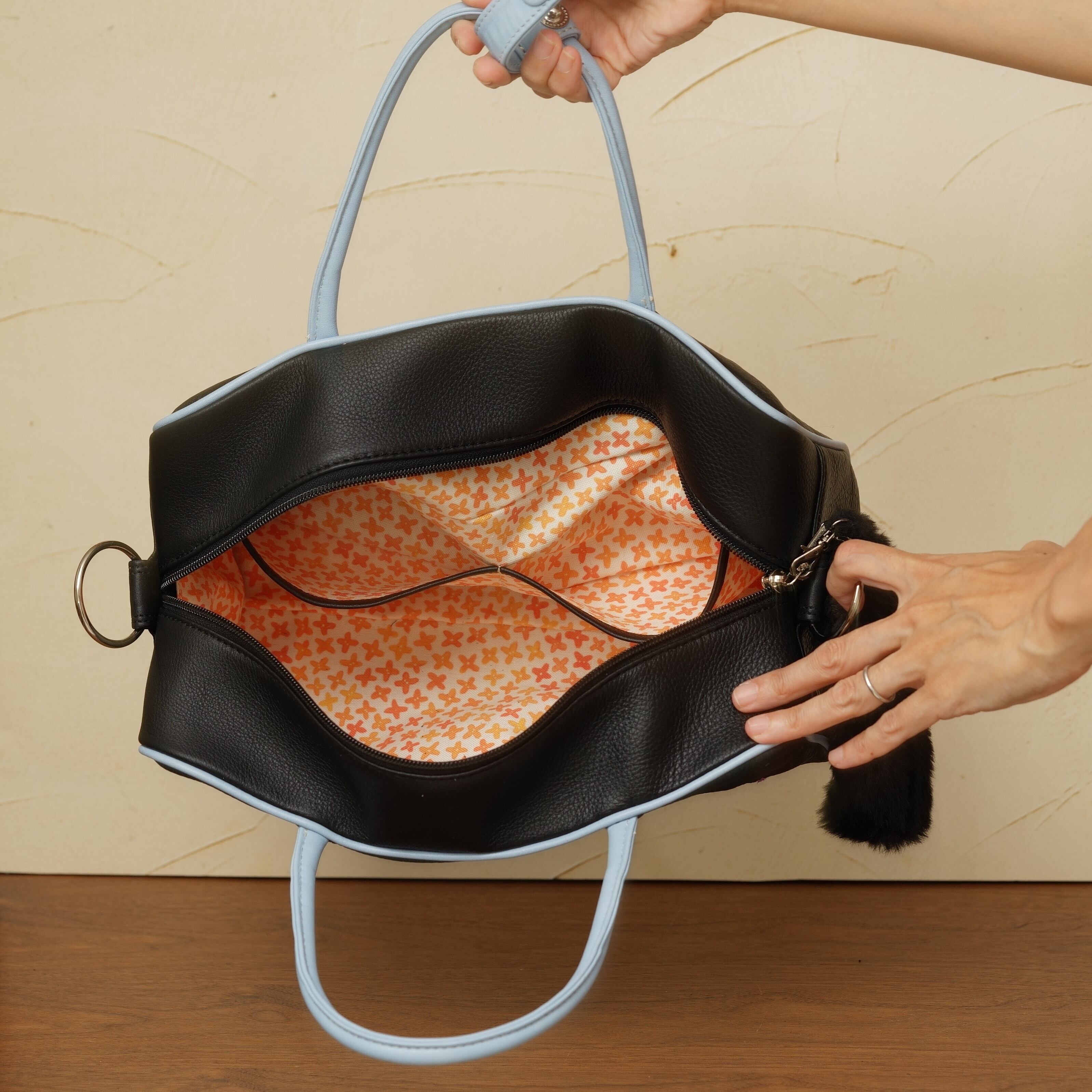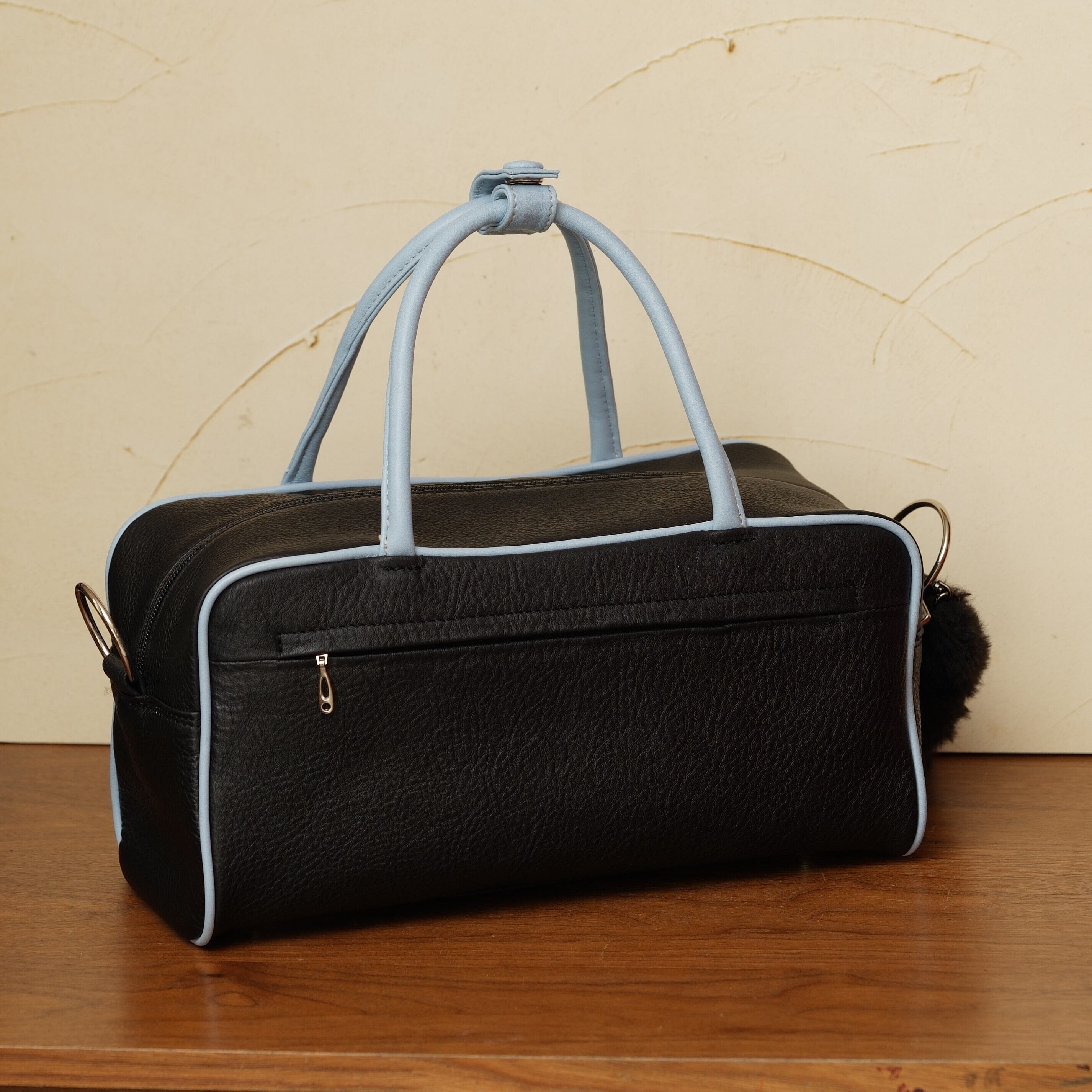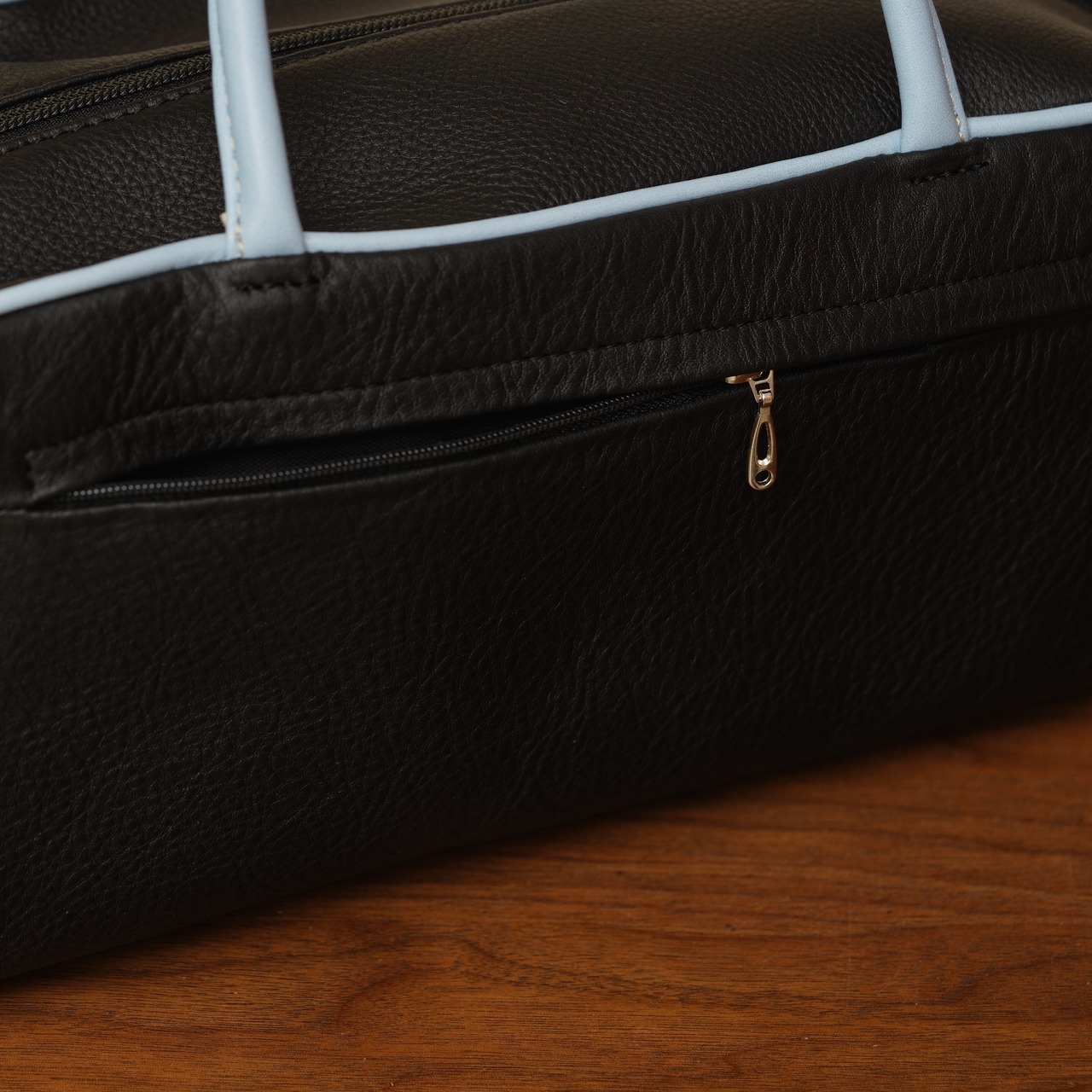 素材:皮革(黒×アリスブルー)裏地:金木犀(限定)金具:シルバー