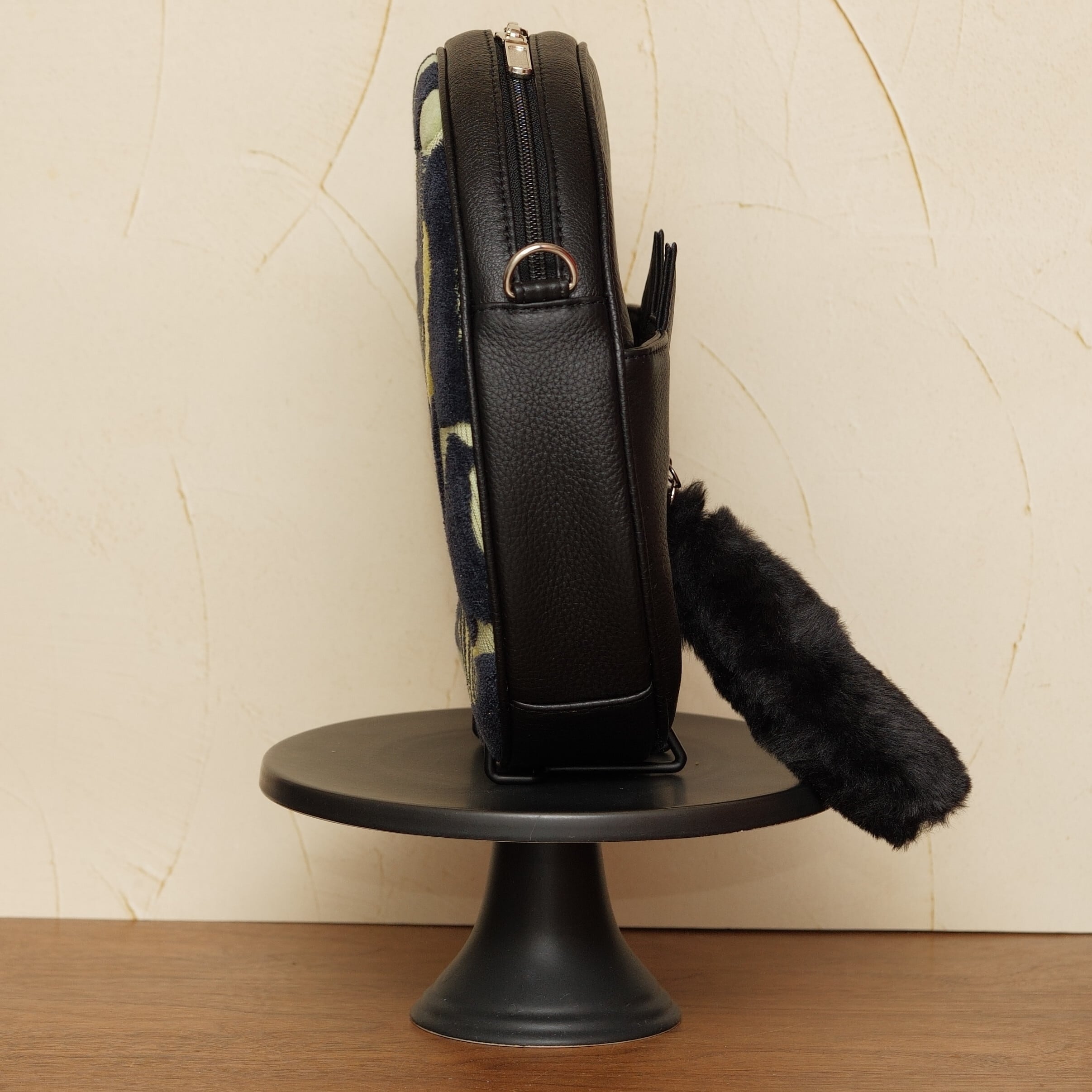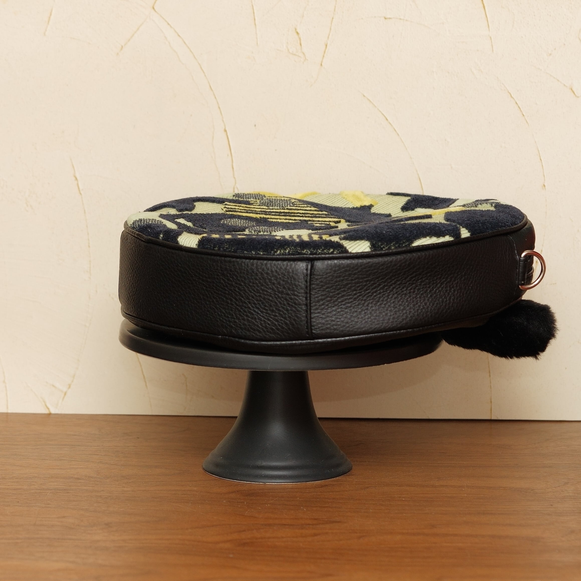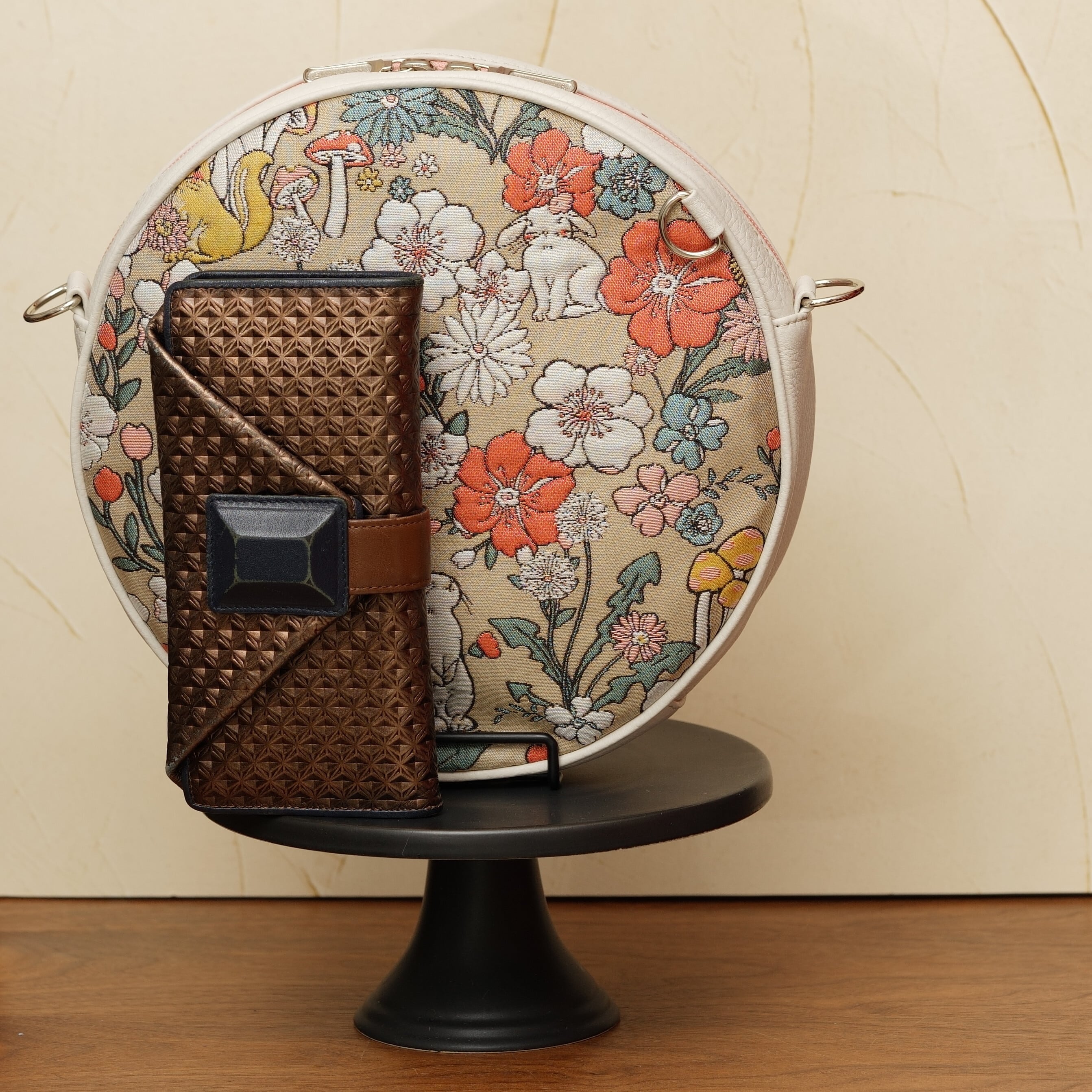 素材:皮革(黒)金華山織り生地 裏地:金木犀(限定) 金具:シルバー