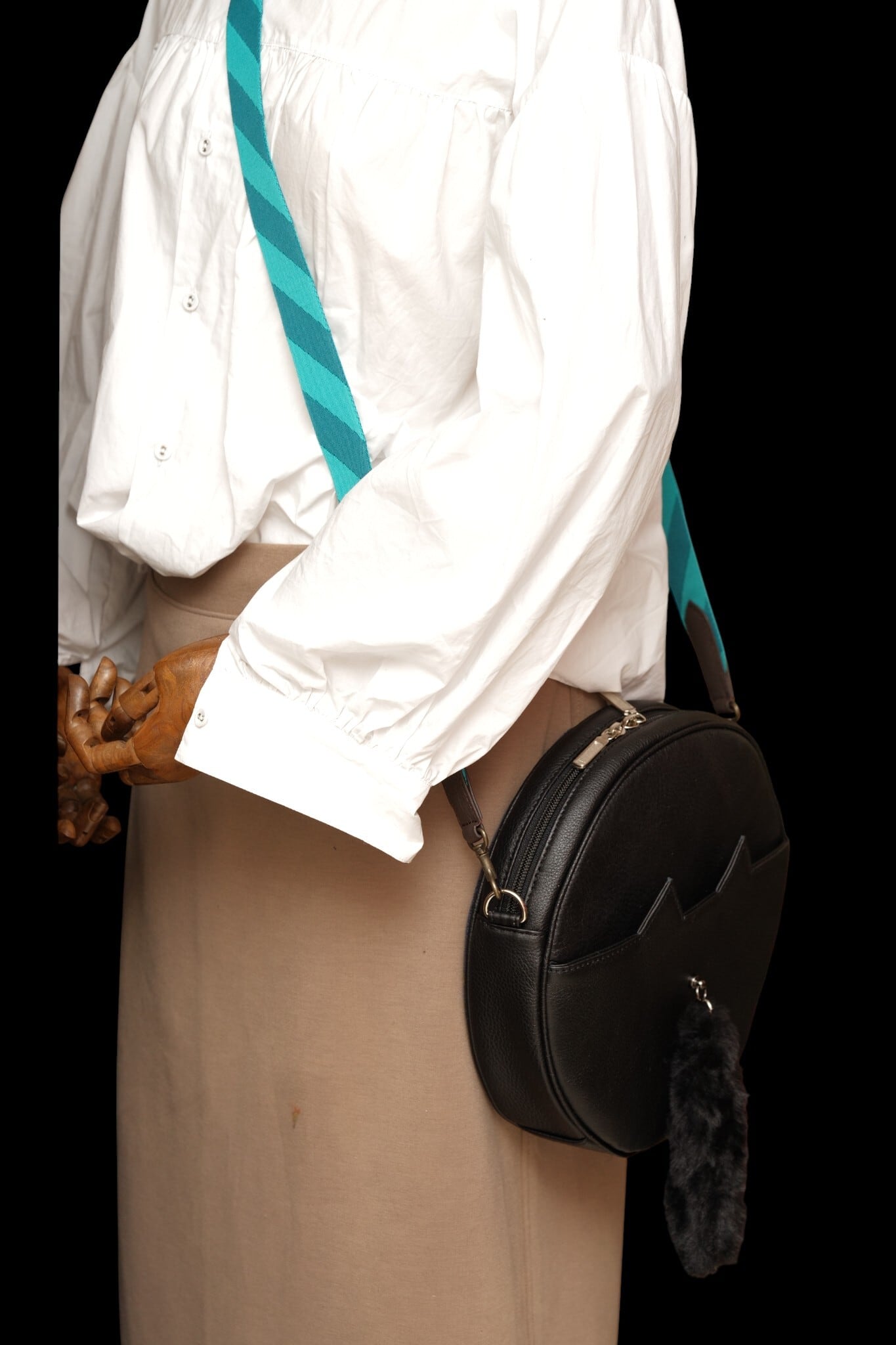 - **猫耳ポケット**: バッグ全体に施されたブラックカラーと、愛らしい猫耳としっぽのポケットが独特の個性を引き立てます。