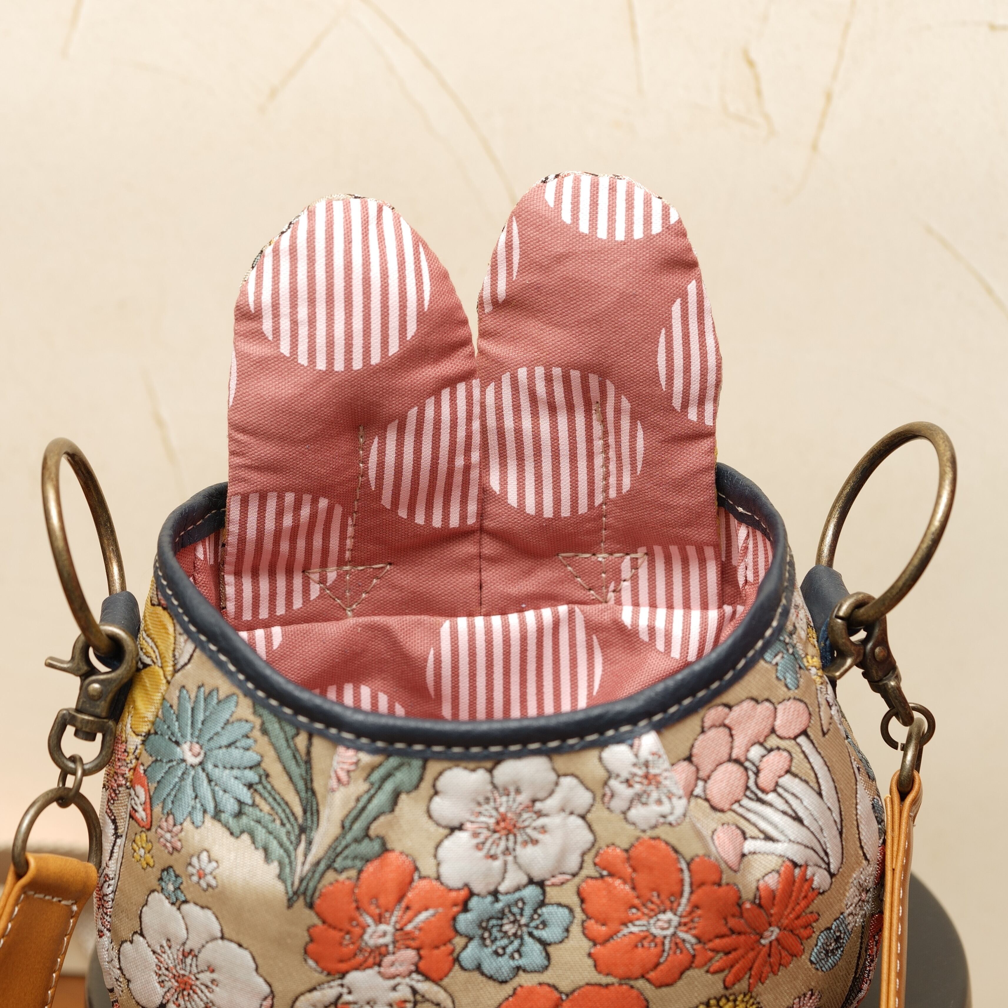 巾着部分を下に織り込んで、トートのような