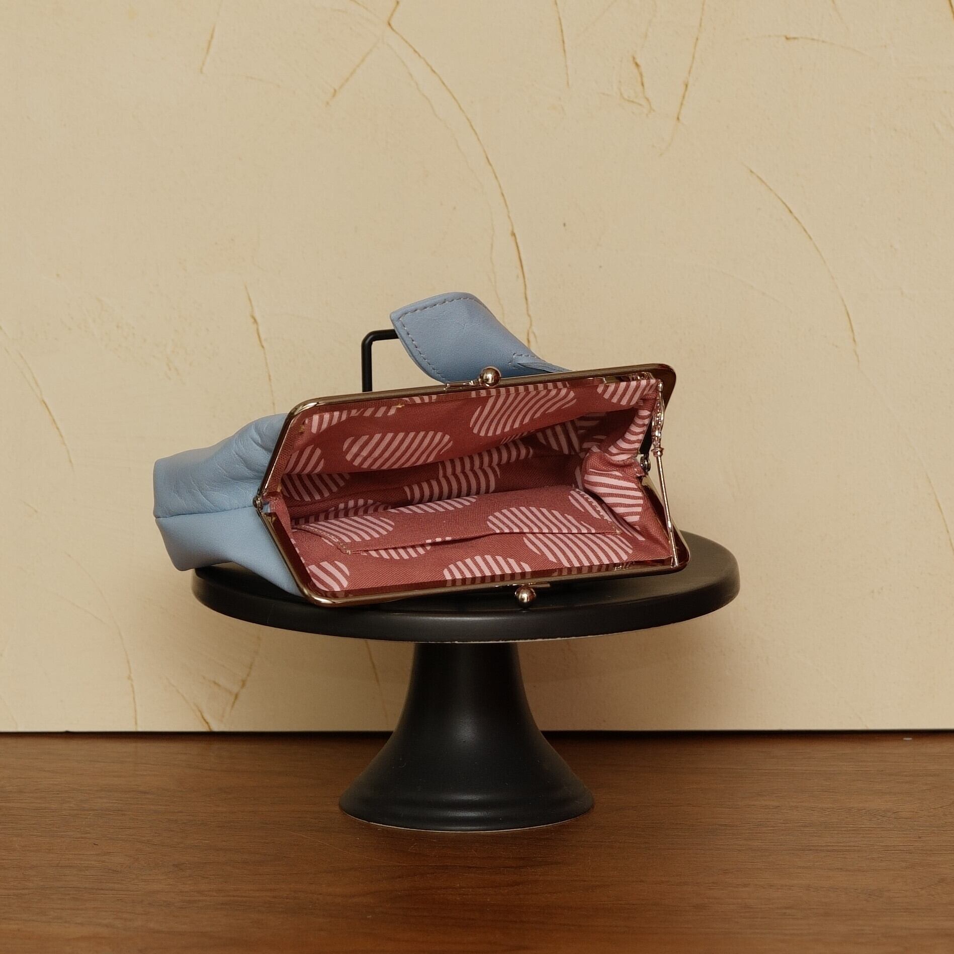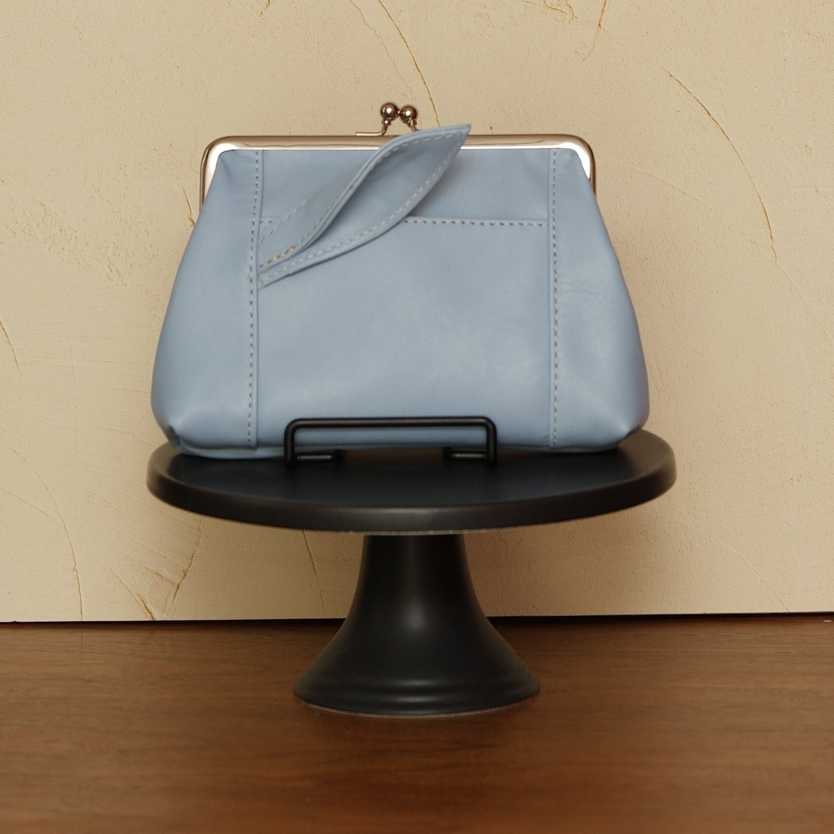 素材:皮革(がま口と金具の色:ニッケル(シルバー))