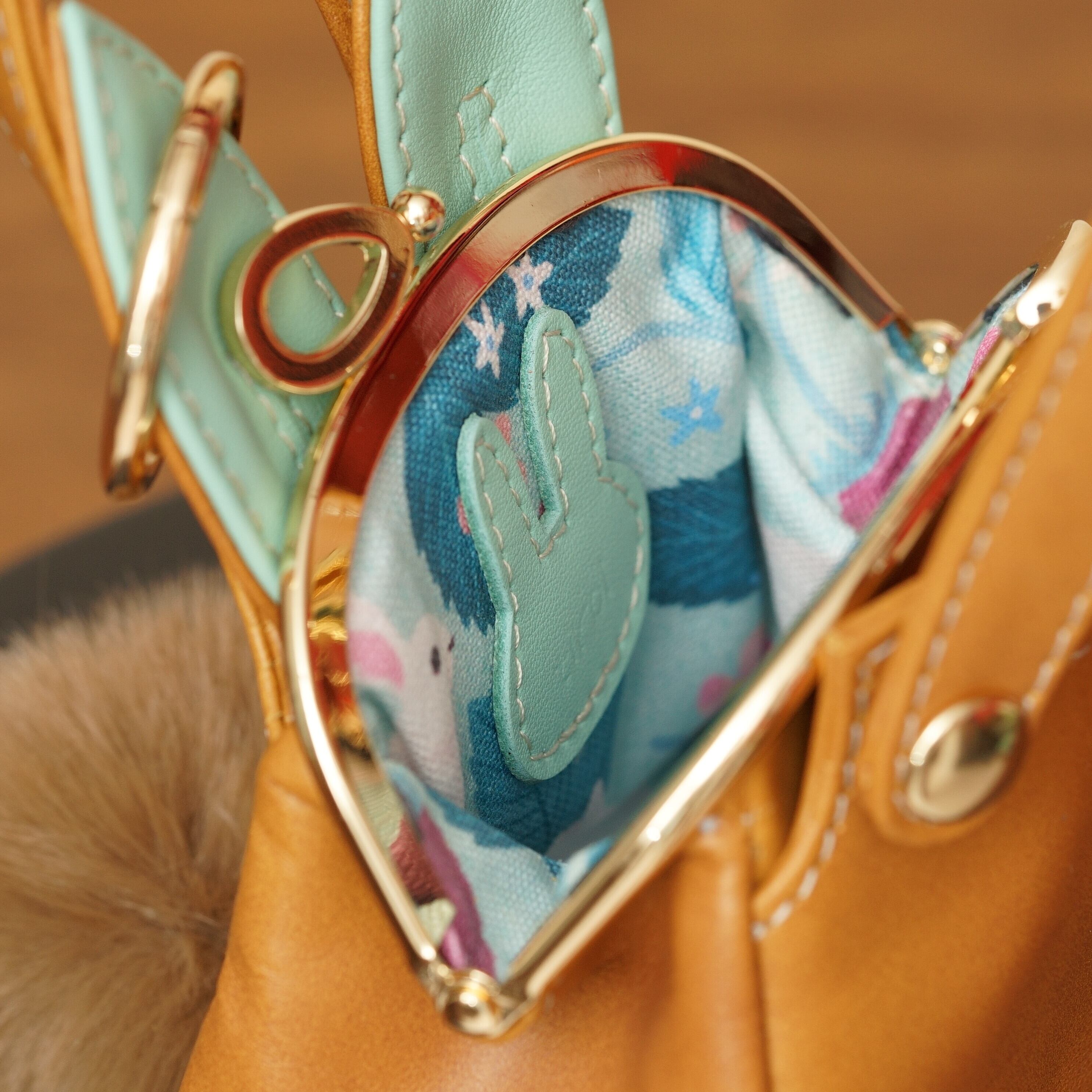 素材:皮革(がま口と金具の色:ゴールド)